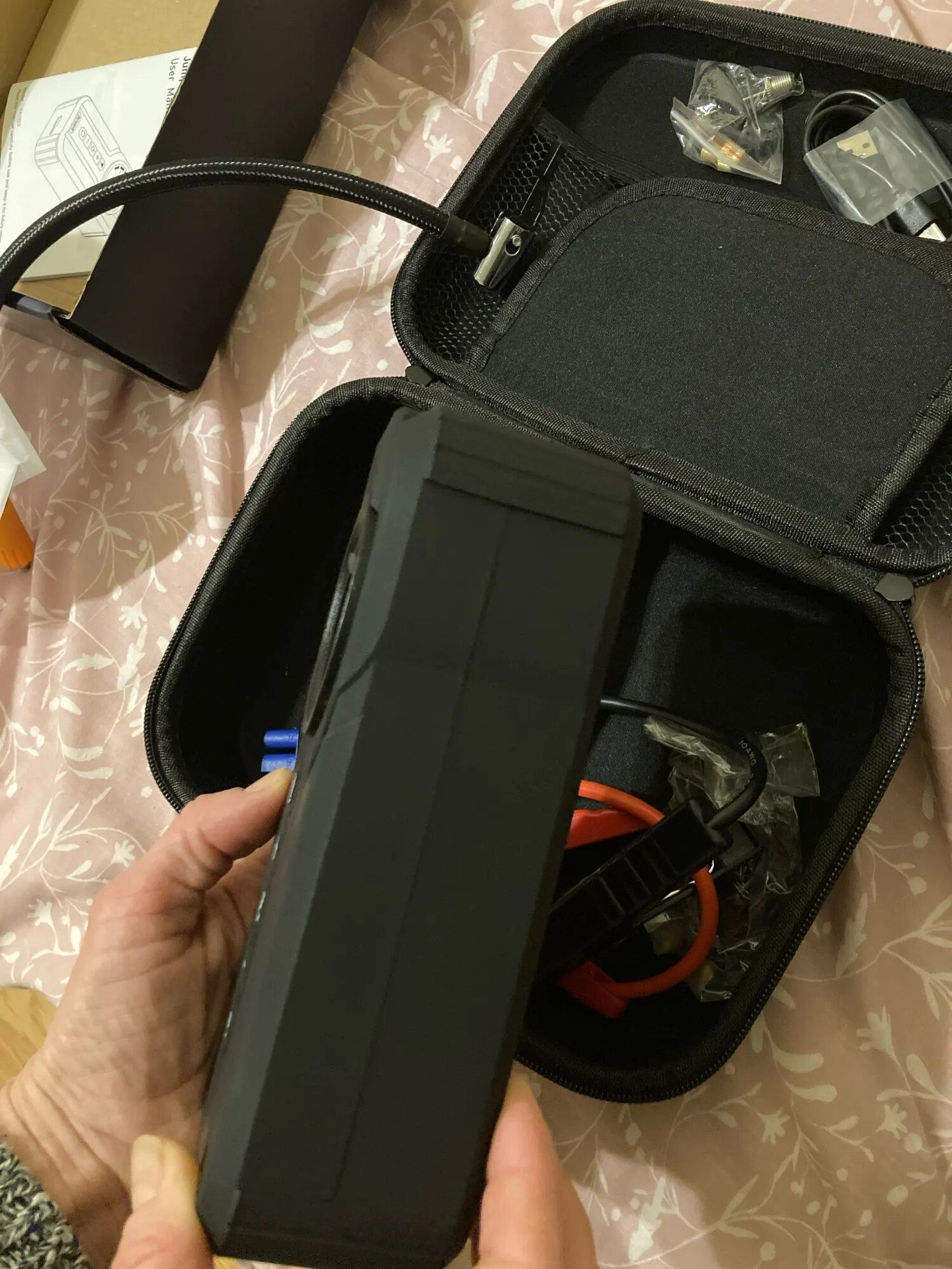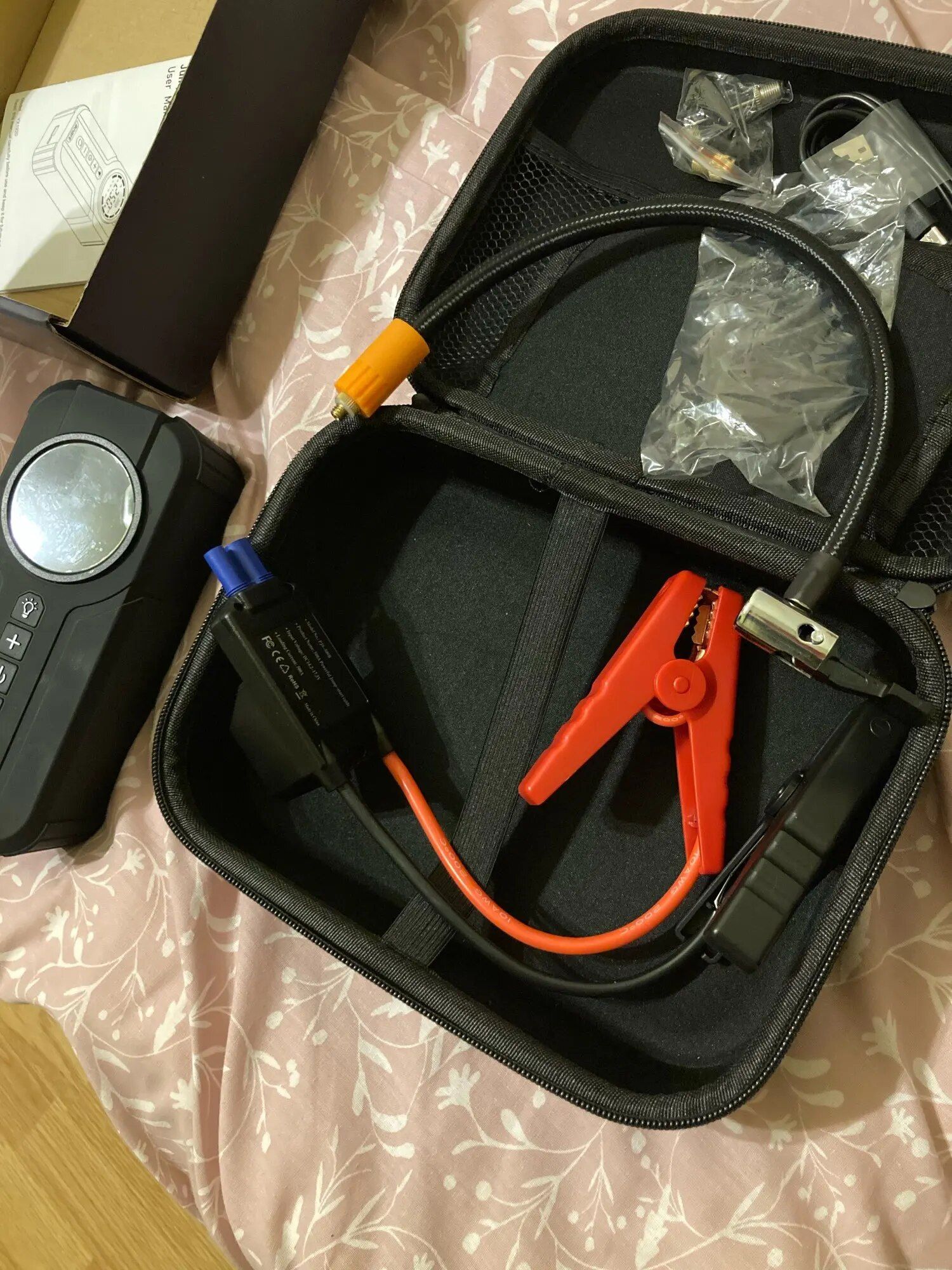This battery booster makes starting your car a breeze; you just attach the clips and wait for the light to turn green before starting your car. Even as someone new to this, I was able to get my car, which hadn't been used for a year, started pretty quickly. It also doubles as a mini compressor for inflating tires, a power bank, and an LED lamp. It's a gadget I now always keep in my vehicle!