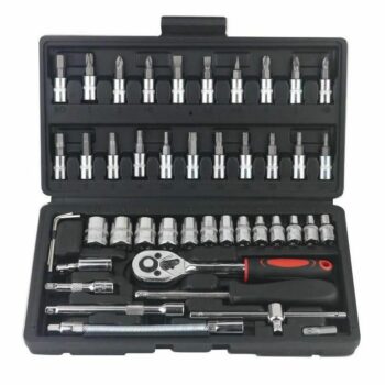 Complete 46-Piece 1/4″ Socket Set with Ratchet & Wrench Combo – Professional Auto Mechanic Tool Kit